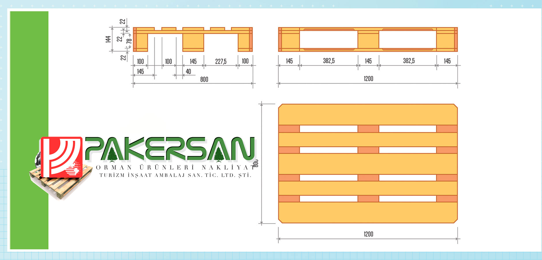 Dünyada en çok kullanılan standart palet ölçüleri, 800 X 1200mm Euro palet ölçüleridir