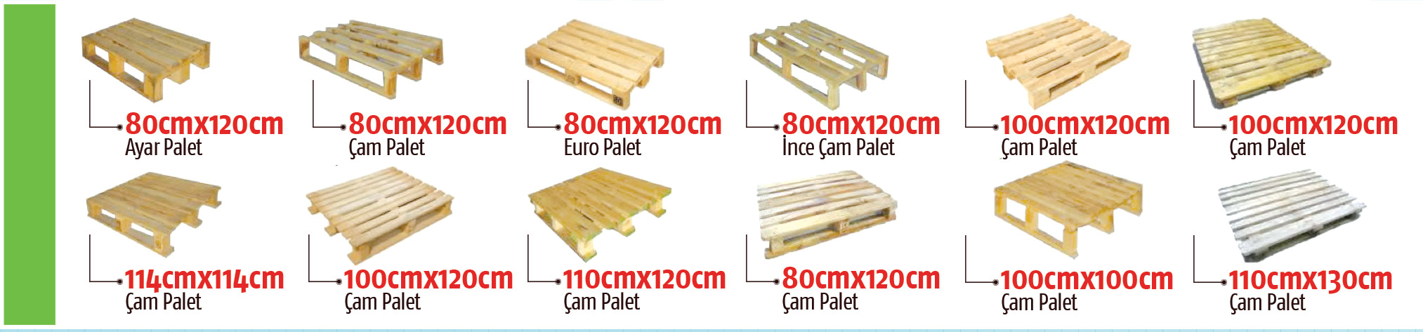 Euro palet üretimi ürünlerimizde Çam, Kayın, Kavak, Kontraplak çeşitleri kullanılarak dayanıklı malzemelerden her çeşit ahşap palet üretilmektedir